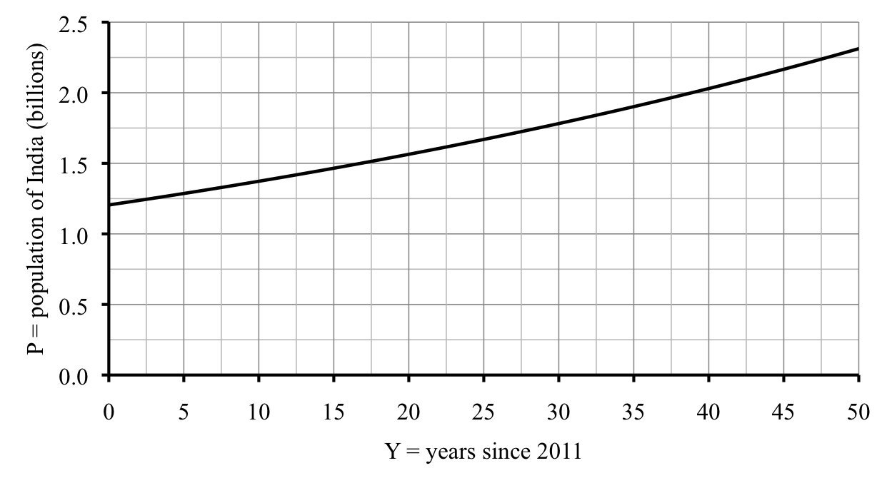 We also know that the starting population is 1.205 billion in 2011. Weβre good to go. The equation is