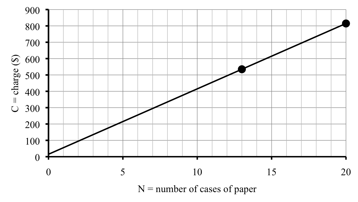 Last week our supplier delivered 13 cases of paper for the office and charged us $534.87. This week, they delivered 20 cases of paper for $814.80. We assume that their charge includes a fixed delivery fee and per case cost, so the dependence must be linear. We would like to understand their pricing scheme better by writing the equation.