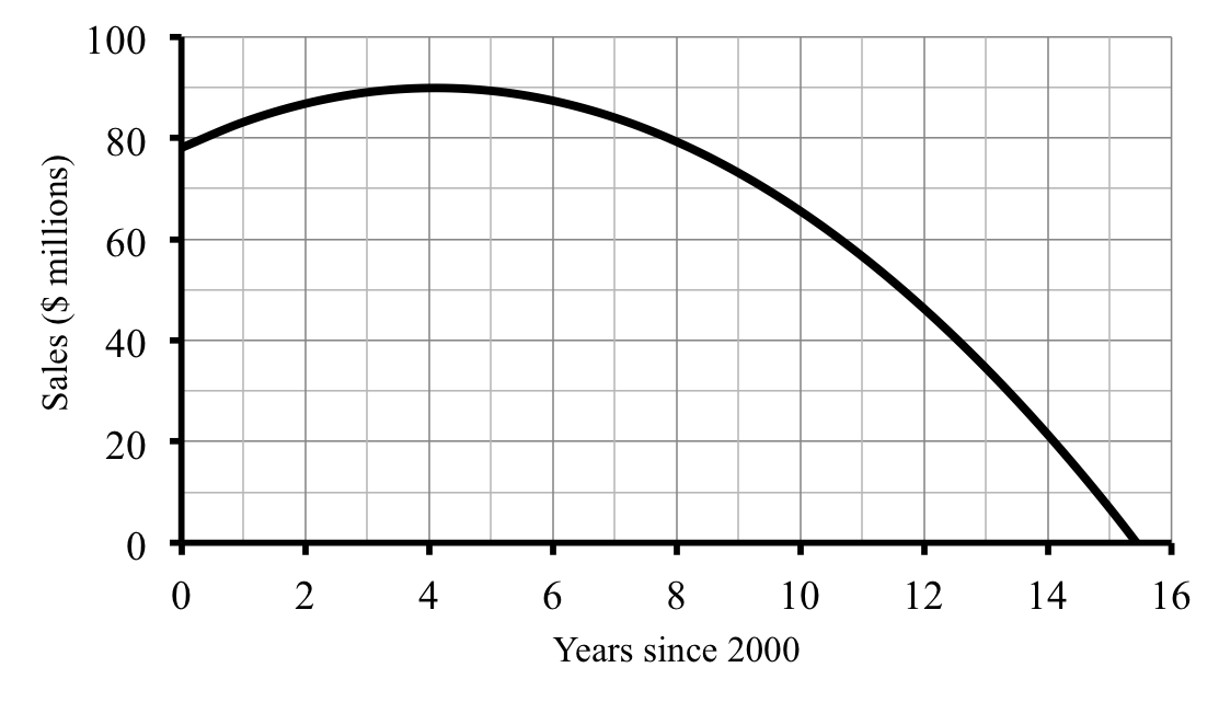 According to this equation, what were the company’s sales in 2000, 2004, 2009? You may confirm your answers with the graph, but use the equation to calculate.